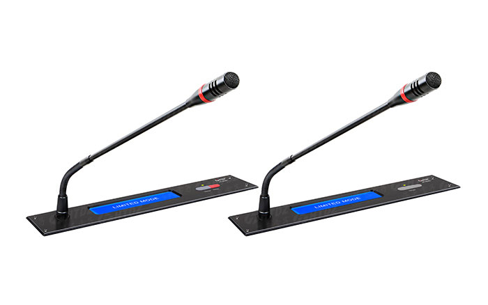 嵌入式会议麦克风嵌入式安装,可拔插双软咪管,液晶显示,简、繁、英三种语言可选。