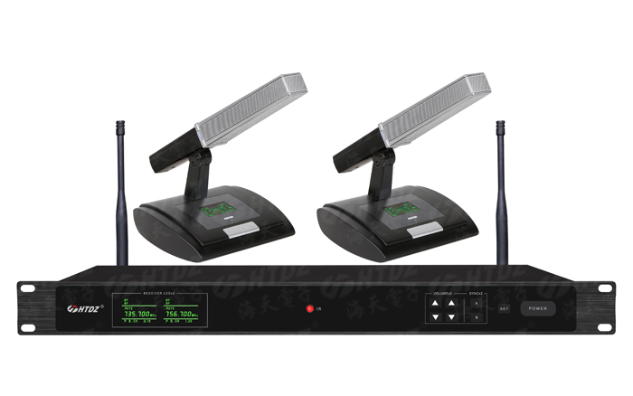 一拖二无线会议麦克风(短杆)采用多级窄带高频及中频选频滤波,充分消除干扰信号; 采用音频压缩一扩展技术,噪音大大减少,动态范围加大;