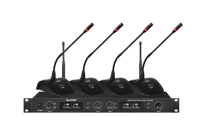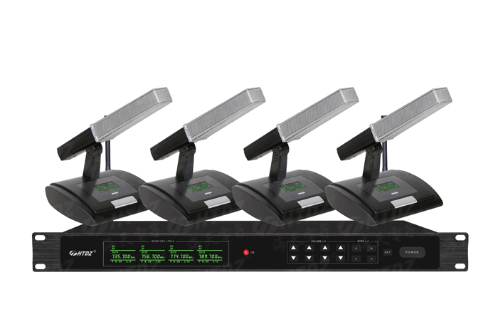 一拖四无线会议麦克风(短杆)采用多级窄带高频及中频选频滤波,充分消除干扰信号;采用音频压缩一扩展技术,噪音大大减少,动态范围加大;了解详情 -